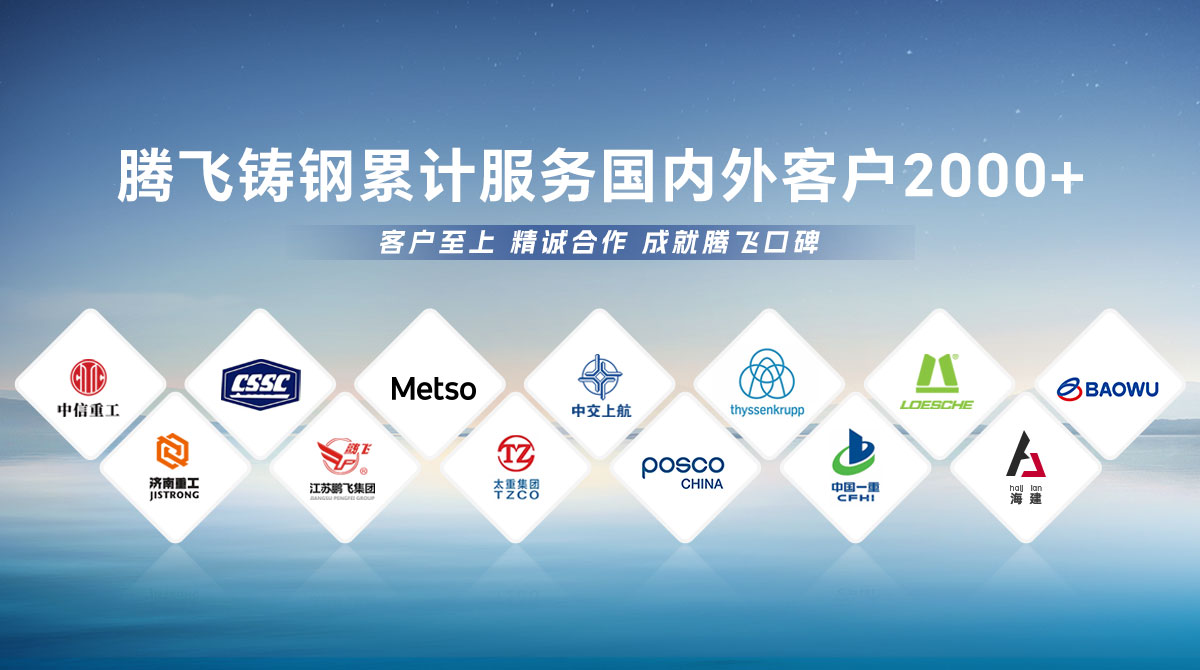 騰飛鑄鋼成立于2006年,位于全國(guó)鑄造基地河南省新鄉(xiāng)市,擁有員工300余人,是一家從事150噸以下碳鋼、低合金鋼、不銹鋼鑄鋼件研發(fā)、制造、服務(wù)為一體的國(guó)家高新技術(shù)企業(yè)?! 」就ㄟ^(guò)了ISO9001國(guó)際質(zhì)量管理體系認(rèn)證,擁有2項(xiàng)發(fā)明專(zhuān) 利,2項(xiàng)河南省科技成果、25項(xiàng)實(shí)用新型技術(shù),通過(guò)了“環(huán)???jī)效評(píng)級(jí)B級(jí)企業(yè)”驗(yàn)收,先后榮獲“河南省鑄造行業(yè)綠色發(fā)展企業(yè)”、 “河南省科技型中小企業(yè)”、“河南省專(zhuān)精特新中小企業(yè)”等榮譽(yù)稱(chēng)號(hào)。  公司擁有2臺(tái)25噸電爐,4臺(tái)大型天燃?xì)鉄崽幚頎t、10米回旋自動(dòng)拋丸機(jī)一臺(tái), φ8m數(shù)控立車(chē)、φ10m數(shù)控滾齒機(jī)等各類(lèi)高精裝備100余臺(tái)套,年產(chǎn)能3萬(wàn)余噸,能為客戶提供從產(chǎn)品設(shè)計(jì)、木模加工、大型鑄造、大型加工一站式服務(wù),產(chǎn)品廣泛應(yīng)用于建材、冶金、鍛壓、冶金、水工、路橋、化工等多個(gè)重型行業(yè)?! ¢L(zhǎng)期服務(wù)于中信重工、中船重工、美卓、上海中交、萊歇、寶武、濟(jì)南重工等全球知名企業(yè),在行業(yè)內(nèi)擁有較高的市場(chǎng)知名度和美譽(yù)度。